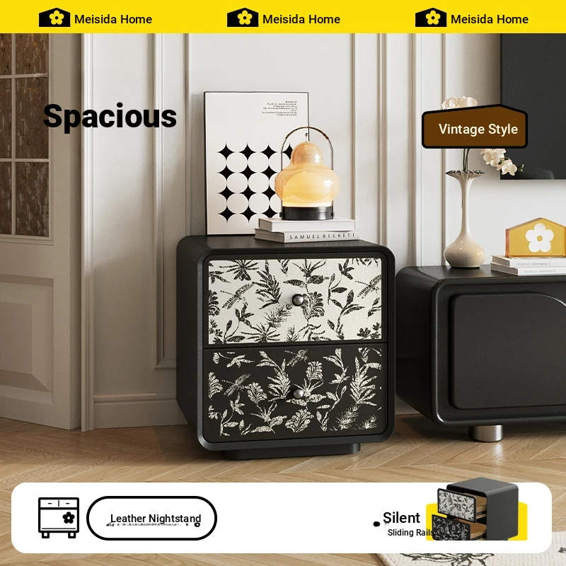 Meisida 2024 New Luxury Nightstand - Vintage Style Bedroom Side Cabinet for Elegant Storage and Organization