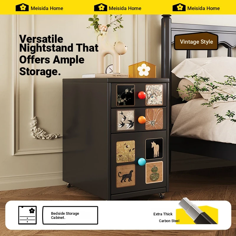 Meisida French Vintage Nightstand 2025 - New Light Luxury Creative Retro Style Small Bedroom Side Cabinet