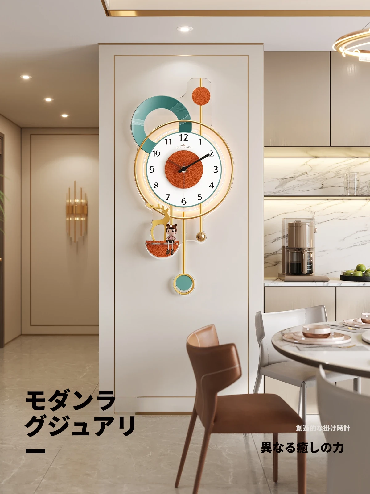 美世达モダンウォールクロック - 2025年新作!リビングにぴったりなシンプルでクリエイティブなデザイン。静音機能付き、食卓や居間の装飾に最適!
