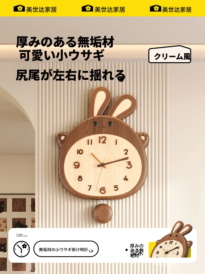 美世达の無垢材ウサギの壁時計 - 2025年新作!シンプルでモダンなデザイン、リビングにぴったりのクリエイティブな掛け時計。おしゃれで機能的なインテリアを演出!