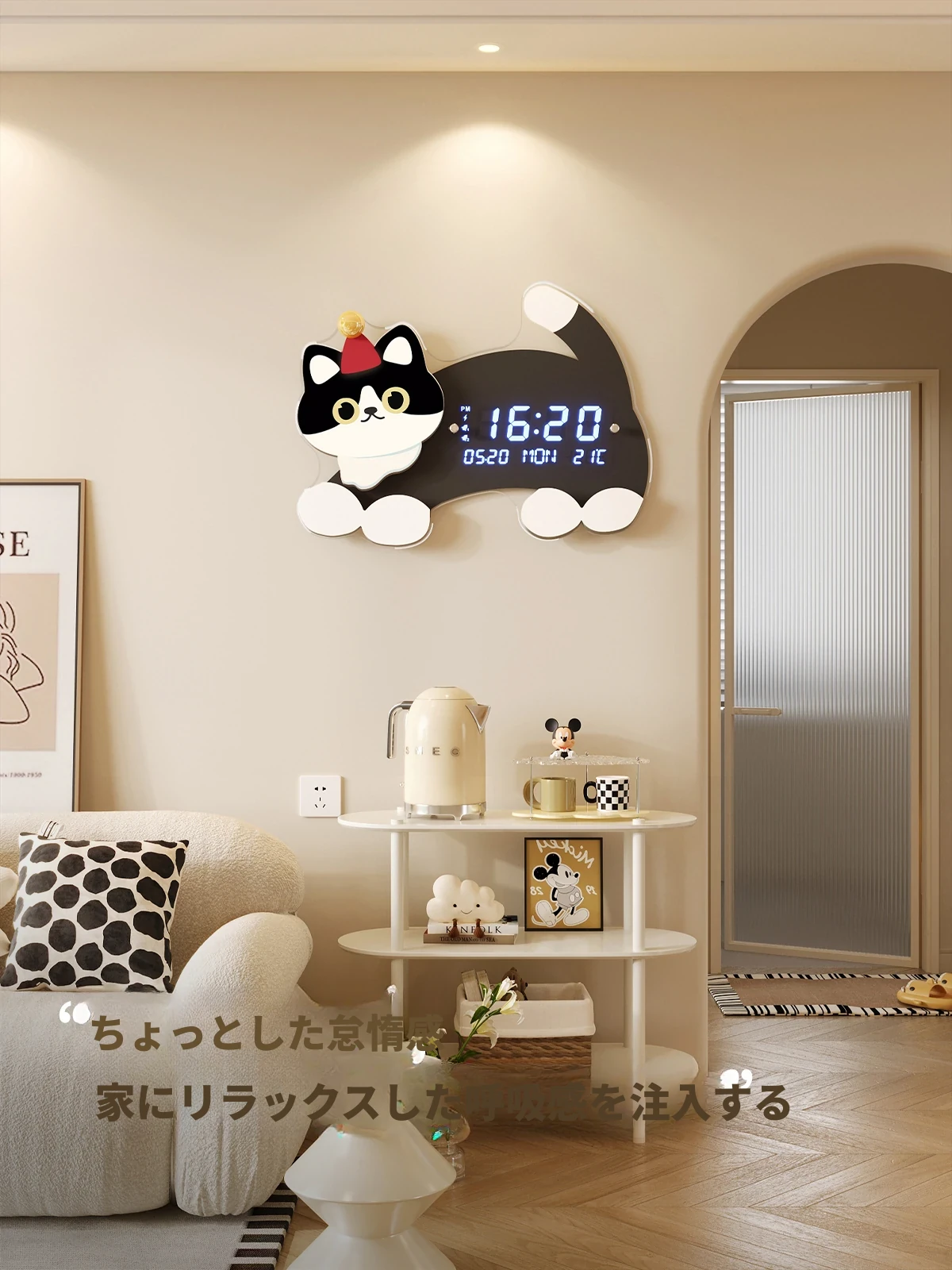 モダンでスタイリッシュなミスダ掛け時計 - 高級感あふれるリビングやダイニングにぴったりなシンプルでクリエイティブな壁掛け時計。あなたの空間を一層引き立てる魅力的なデザインです!