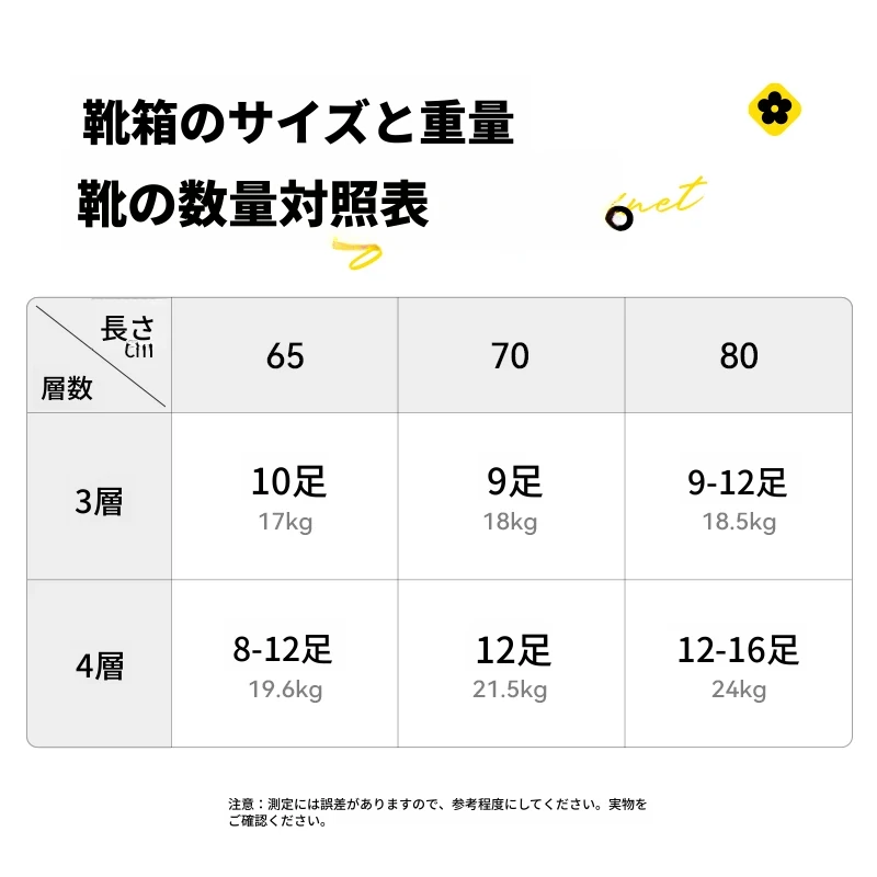 購入前の必見:靴の数量と重量の参考図