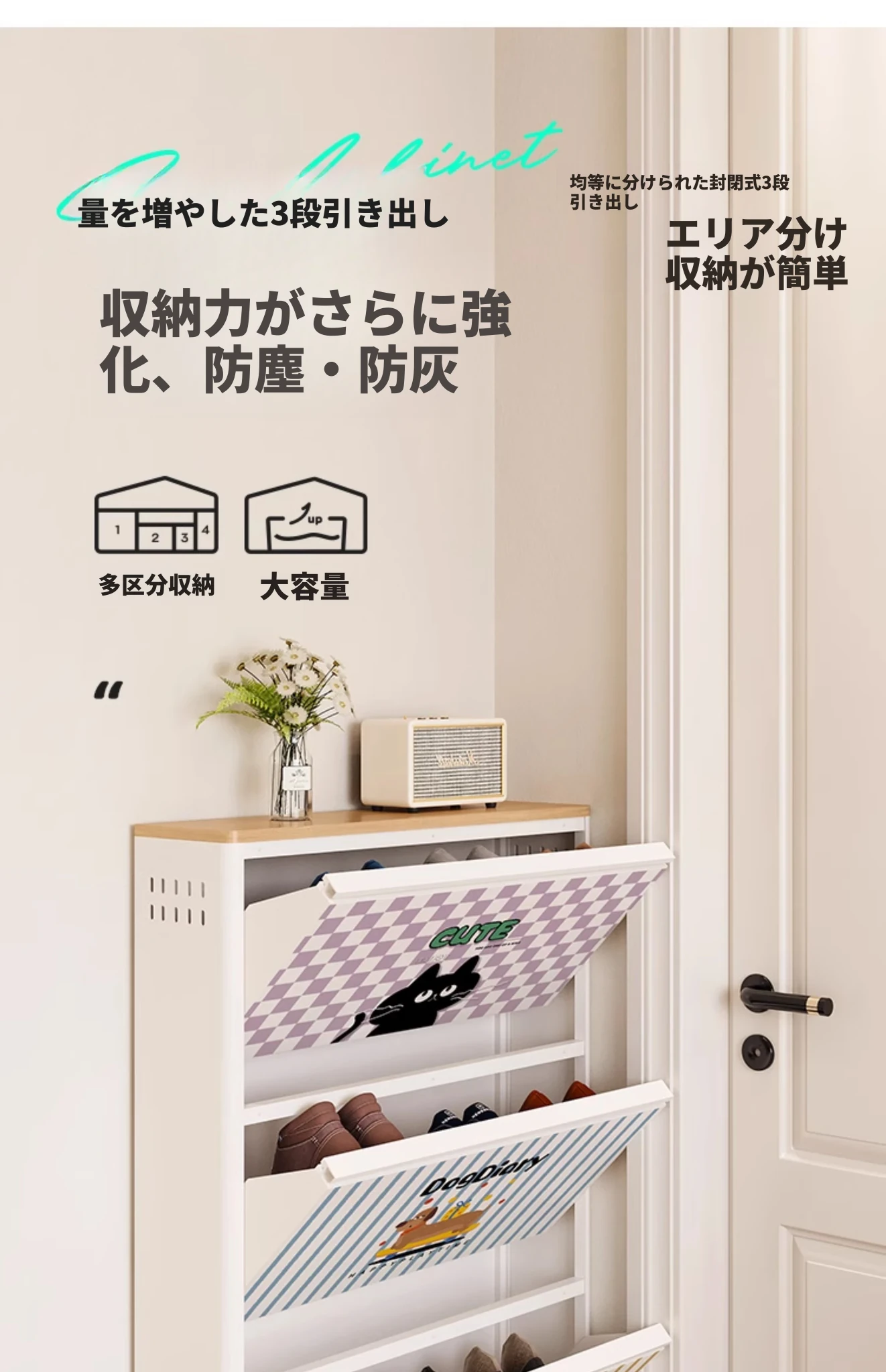 美世达の新作2024年モデル!家庭用スリムシューズキャビネット - 狭い入口にも最適な薄型収納ラック。室内外両用、スタイリッシュで機能的なデザインで、スペースを有効活用!