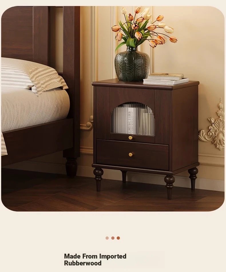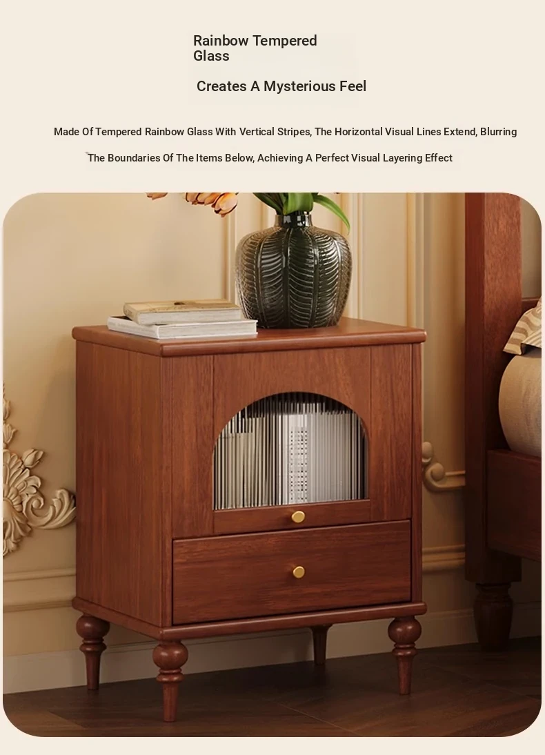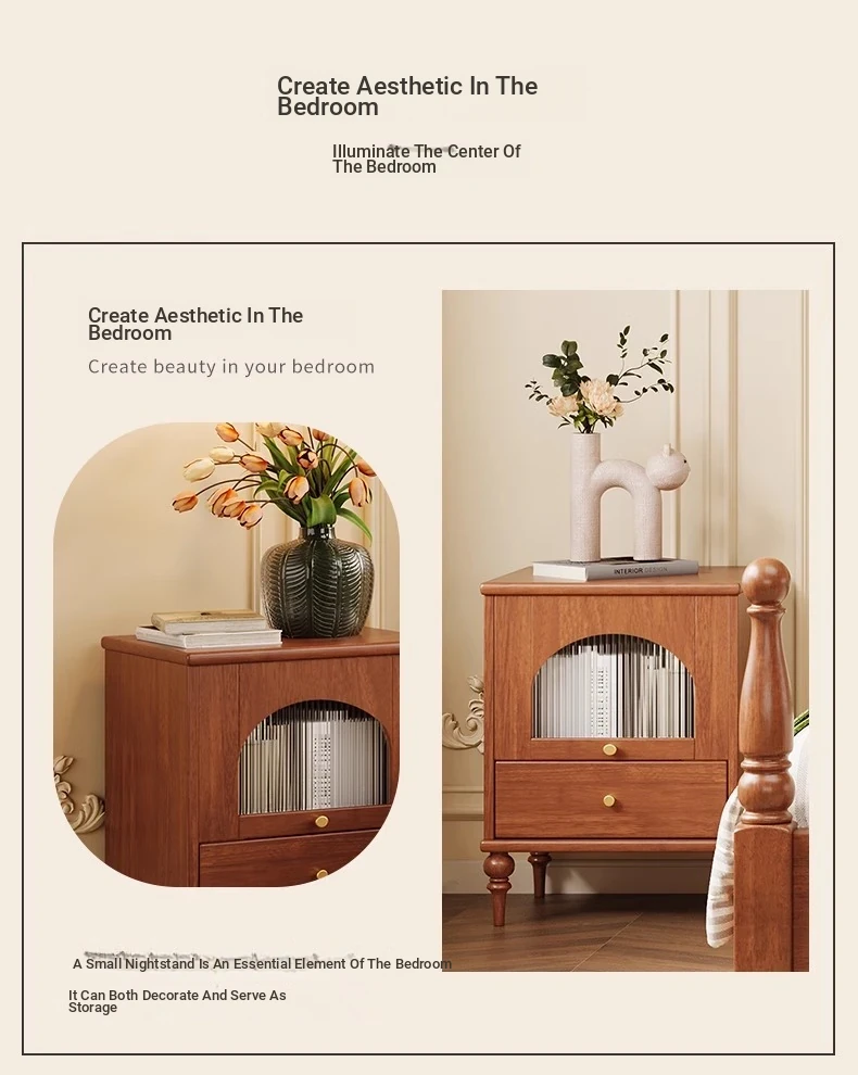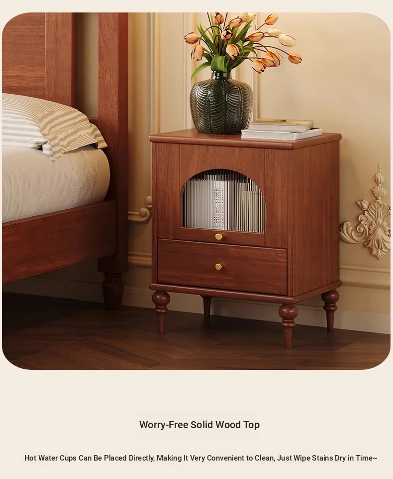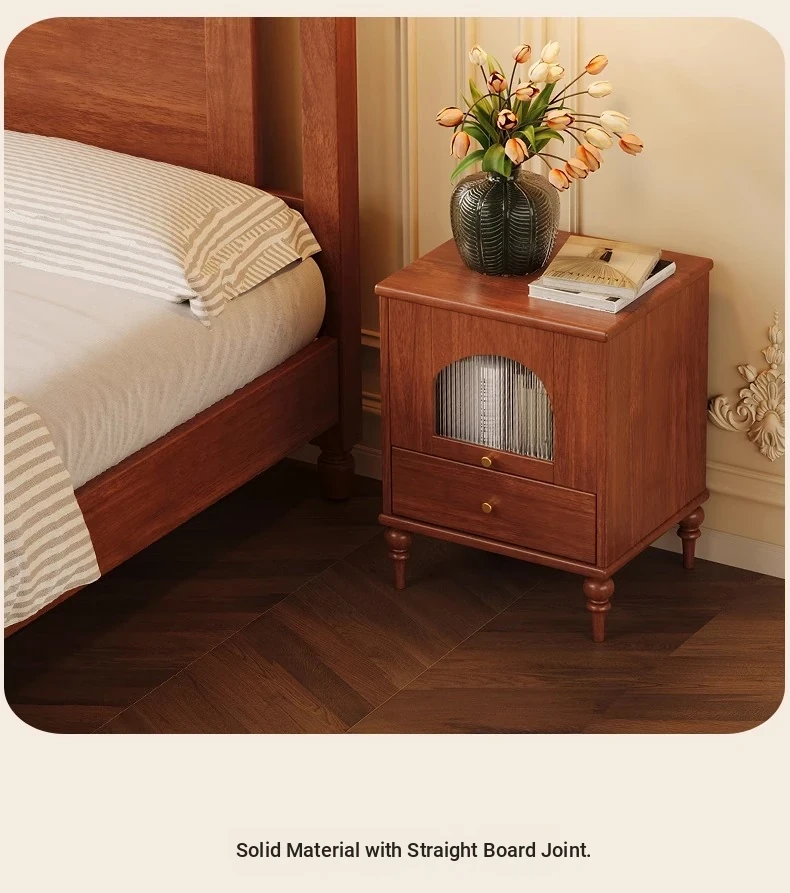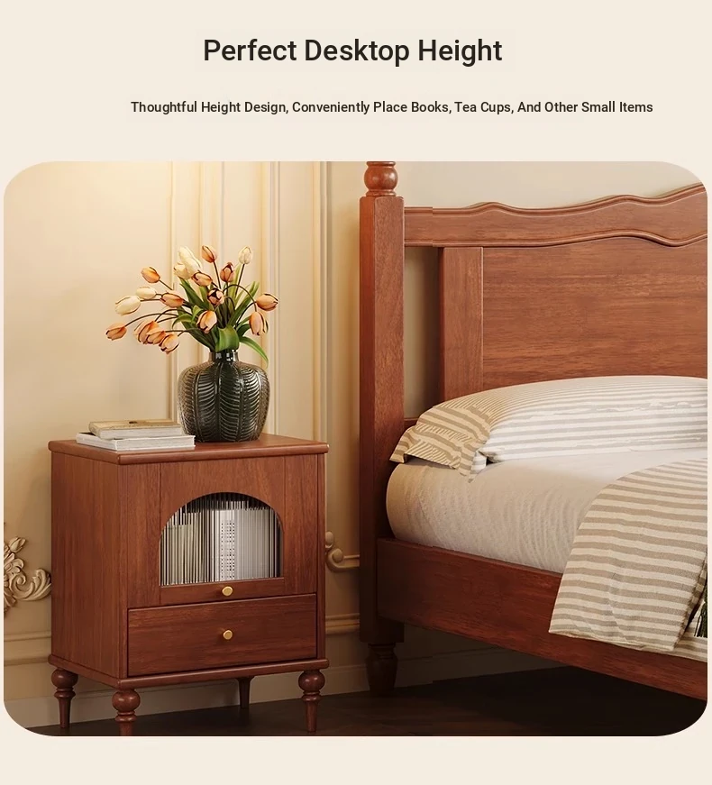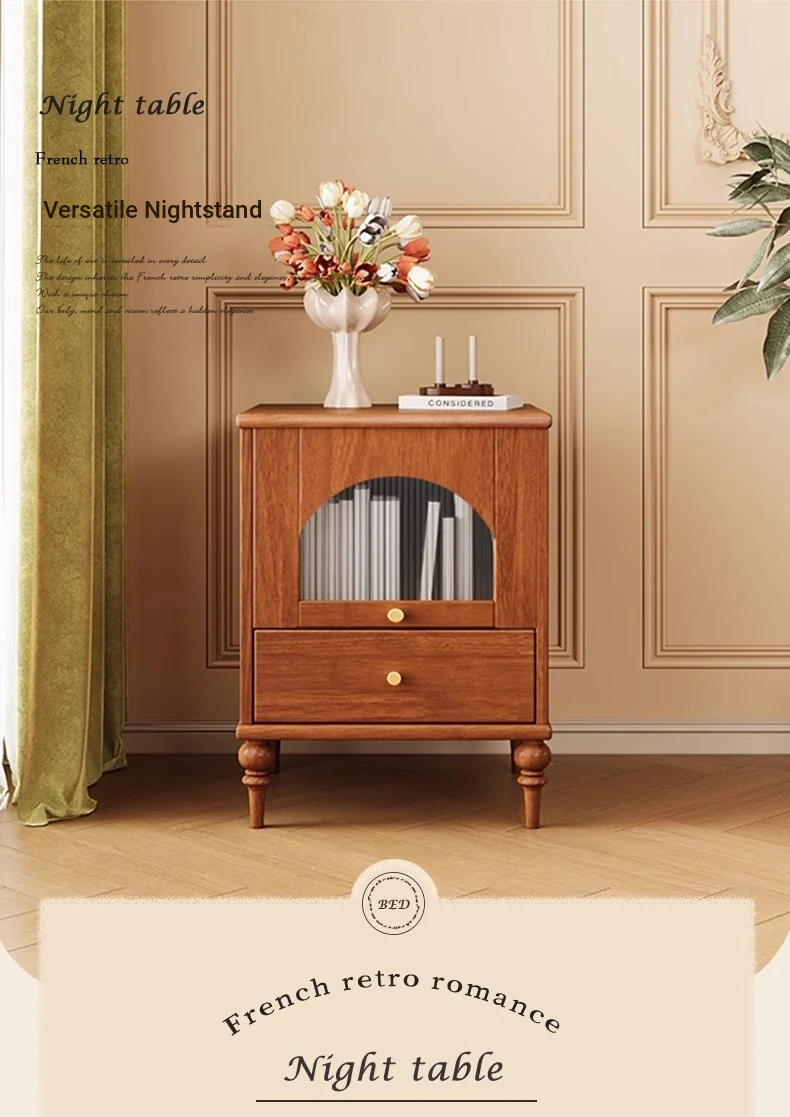 Meisida French Vintage Solid Wood Nightstand - Elegant Small Bedside Cabinet for Bedroom, Creative Retro Storage Solution