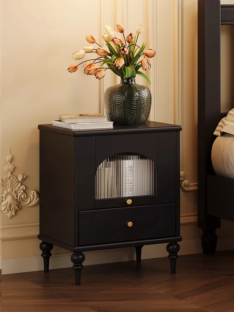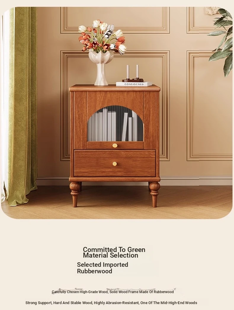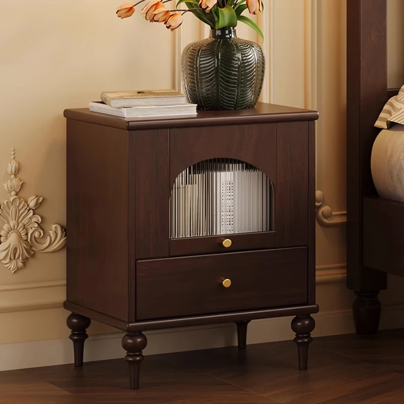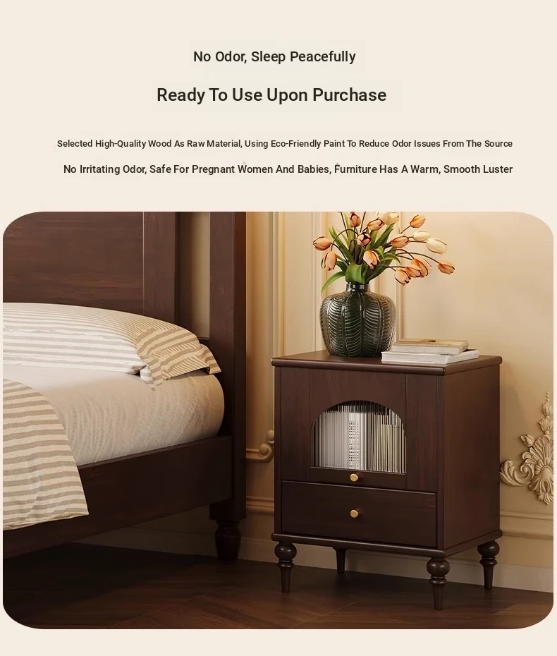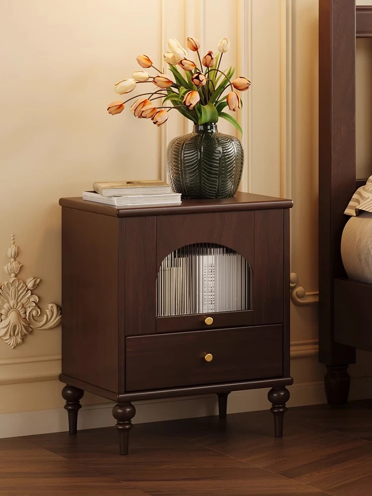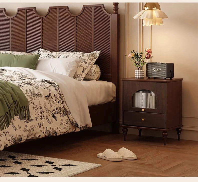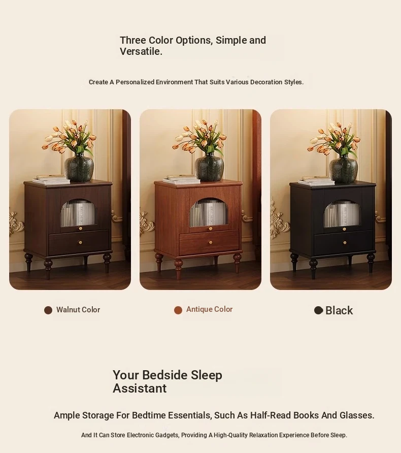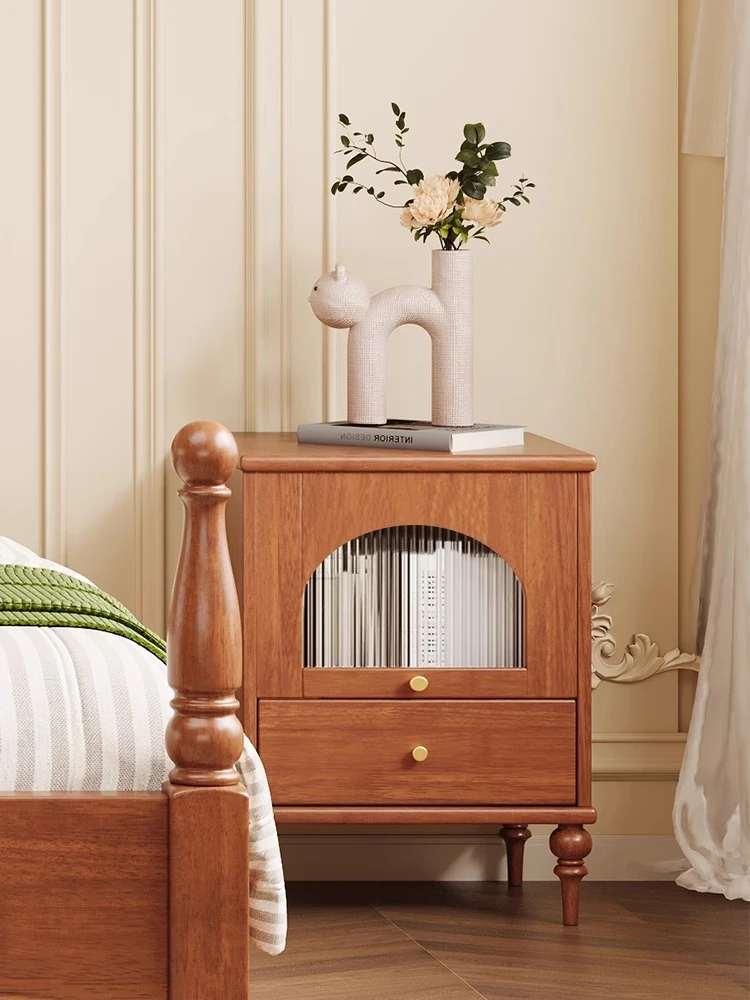 Meisida French Vintage Solid Wood Nightstand - Elegant Small Bedside Cabinet for Bedroom, Creative Retro Storage Solution