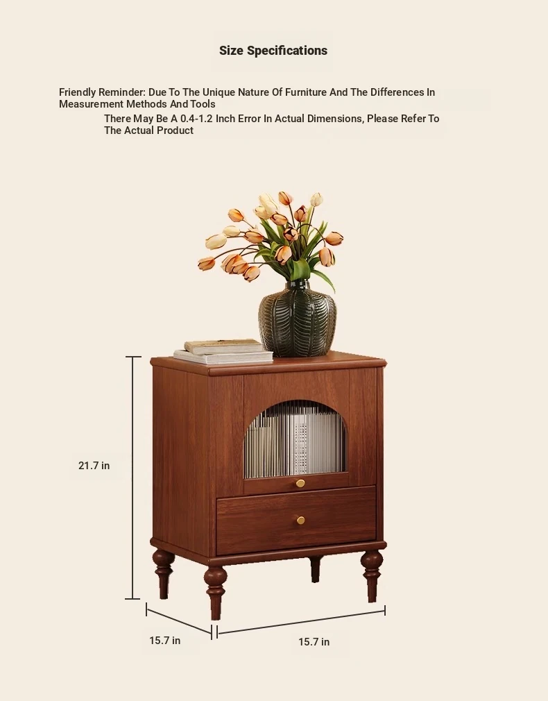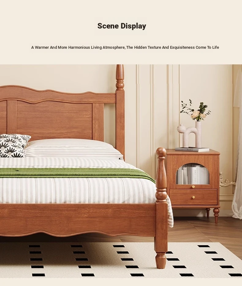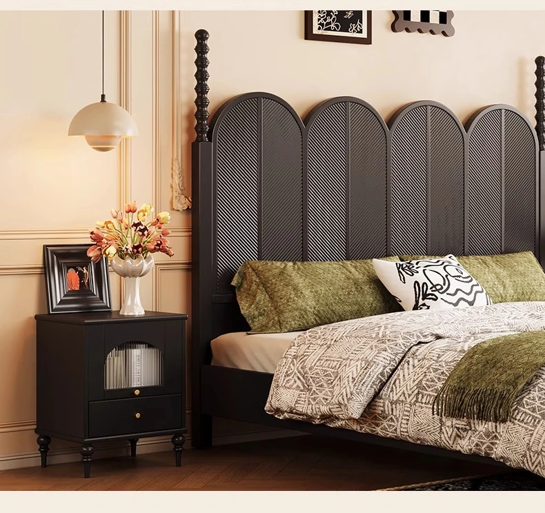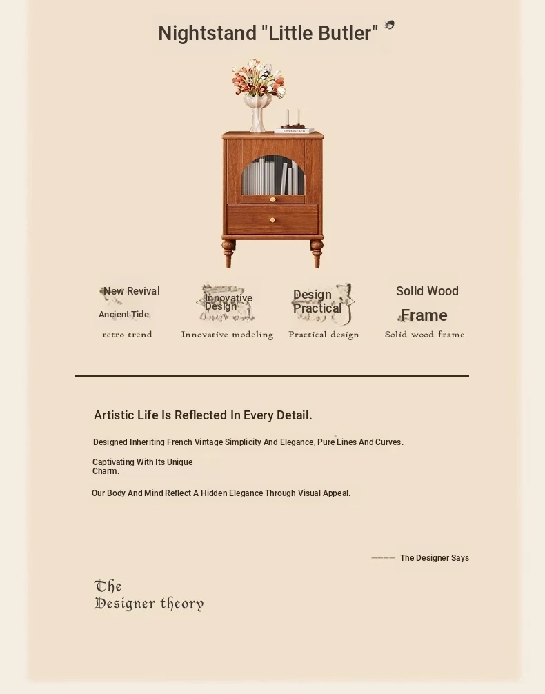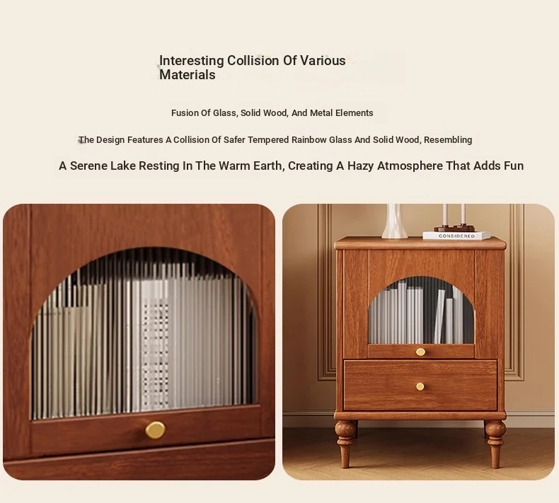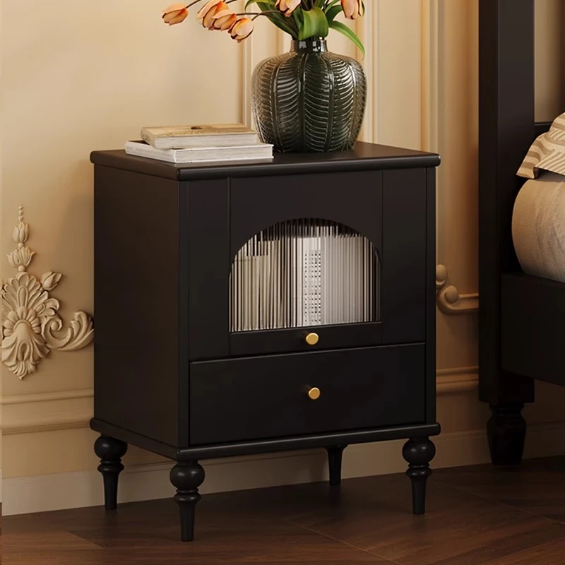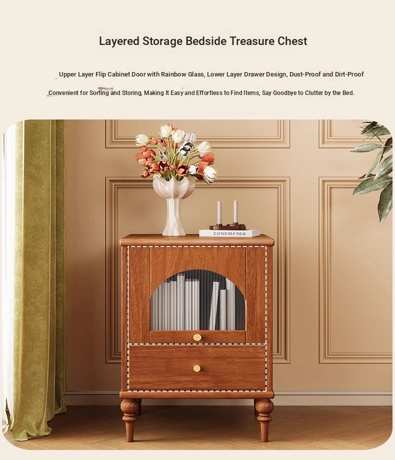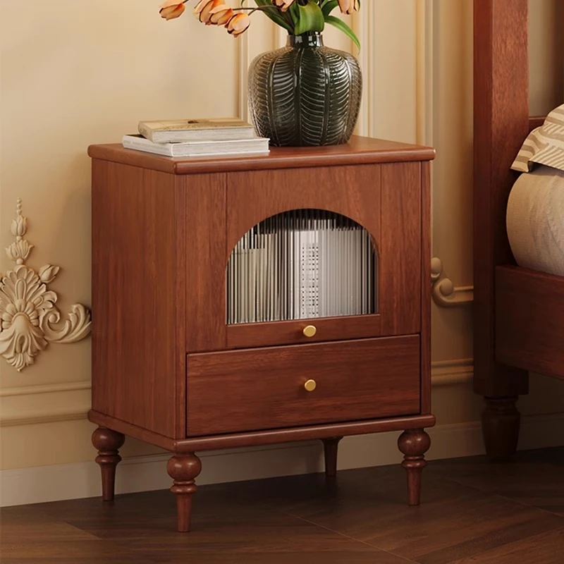 Meisida French Vintage Solid Wood Nightstand - Elegant Small Bedside Cabinet for Bedroom, Creative Retro Storage Solution