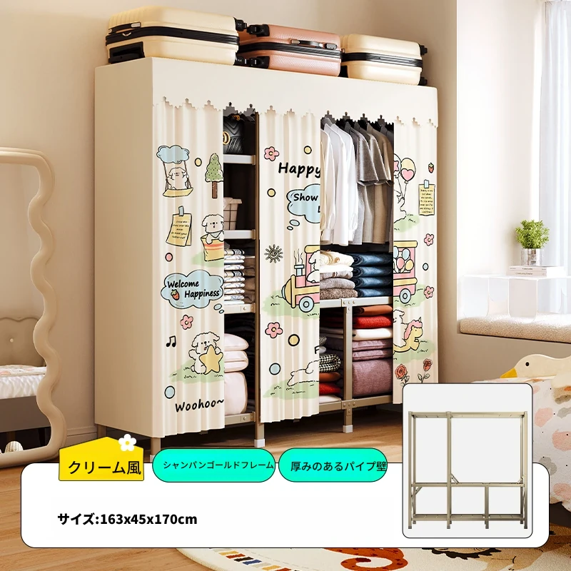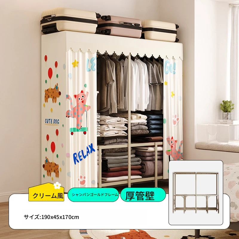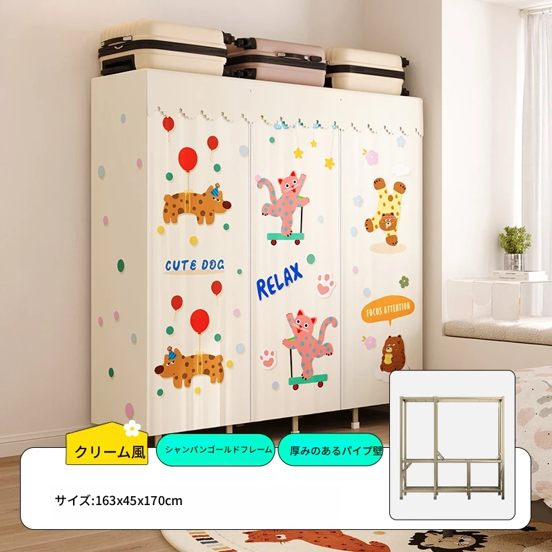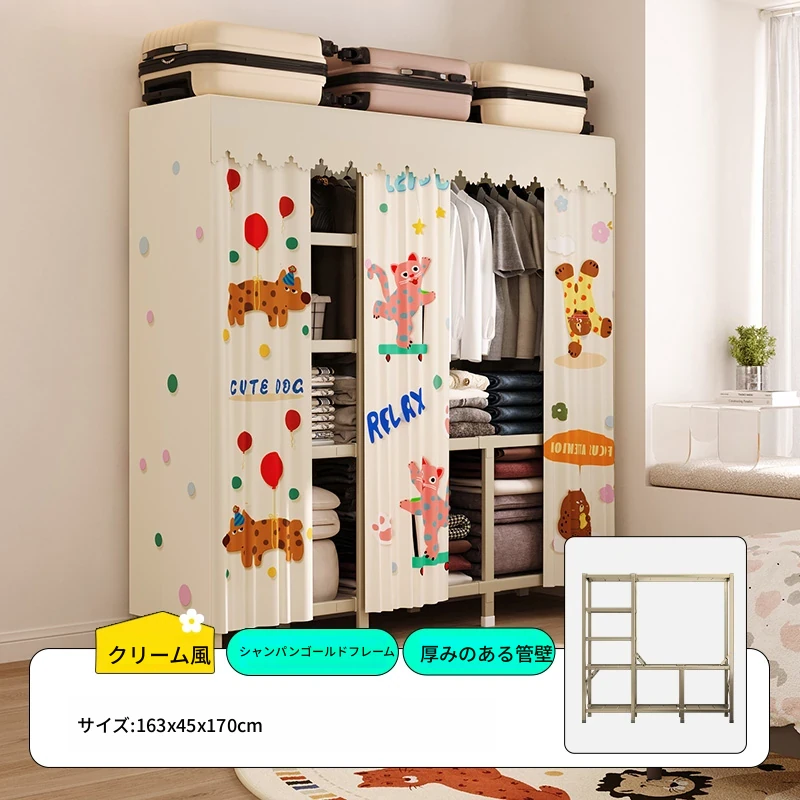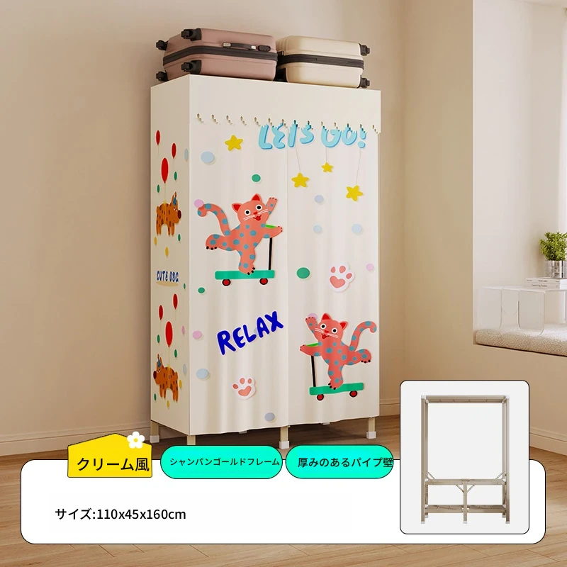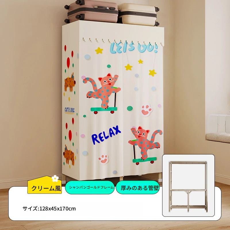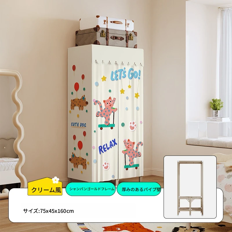 【シャンパン色】水玉猫:長さ163*幅45*高さ170cm(収納棚付き)