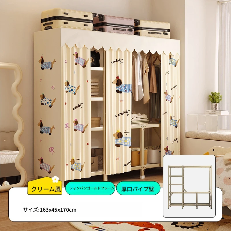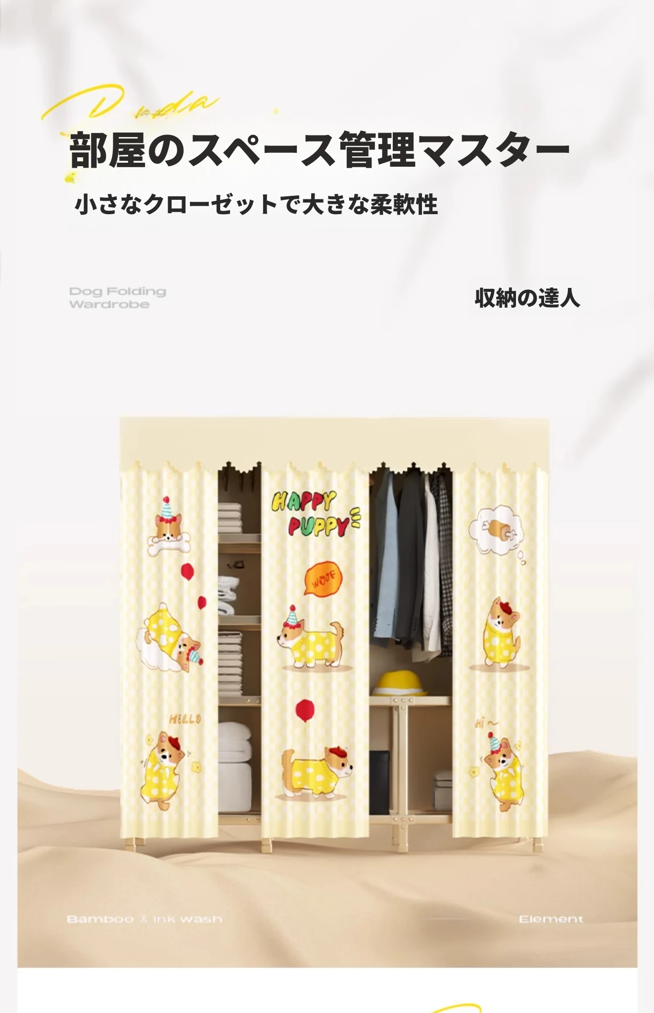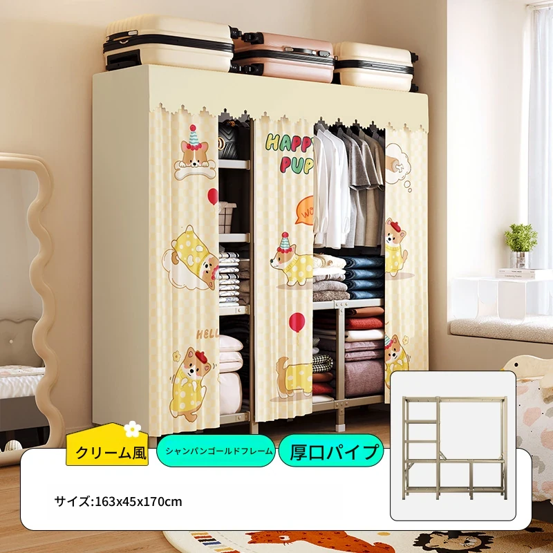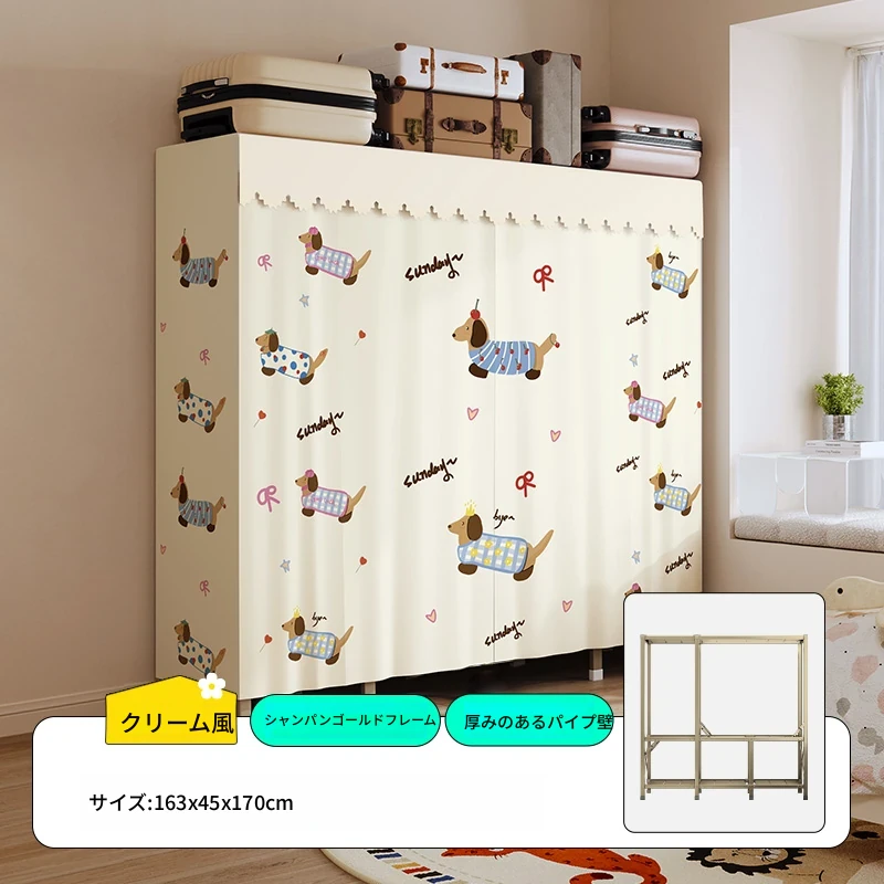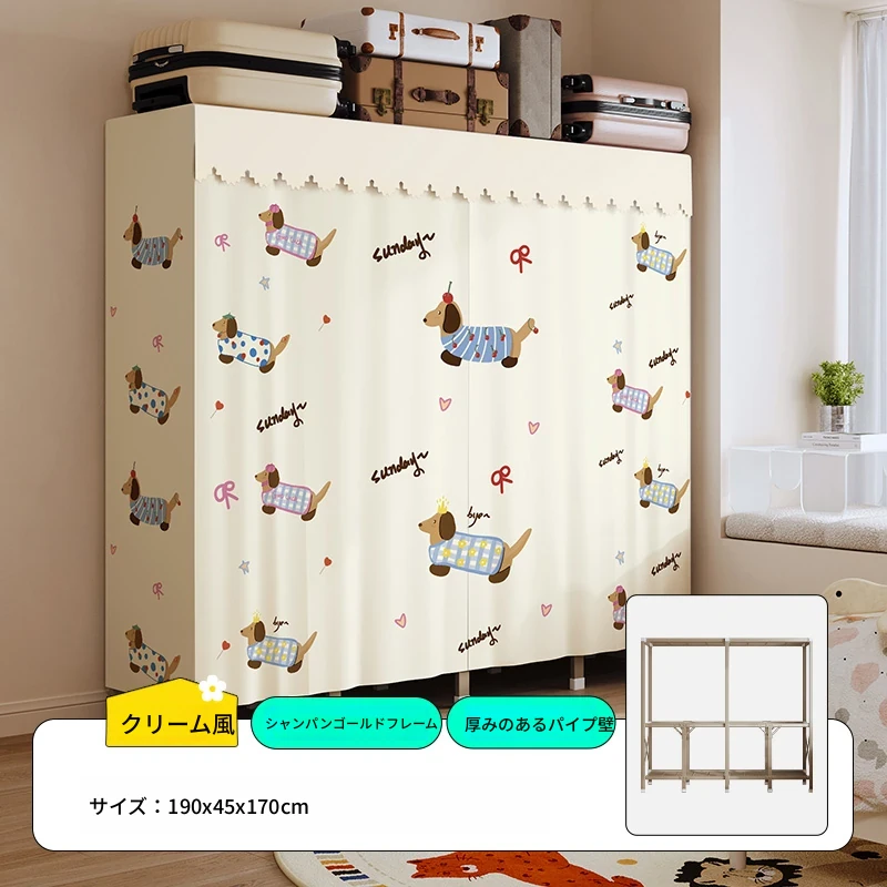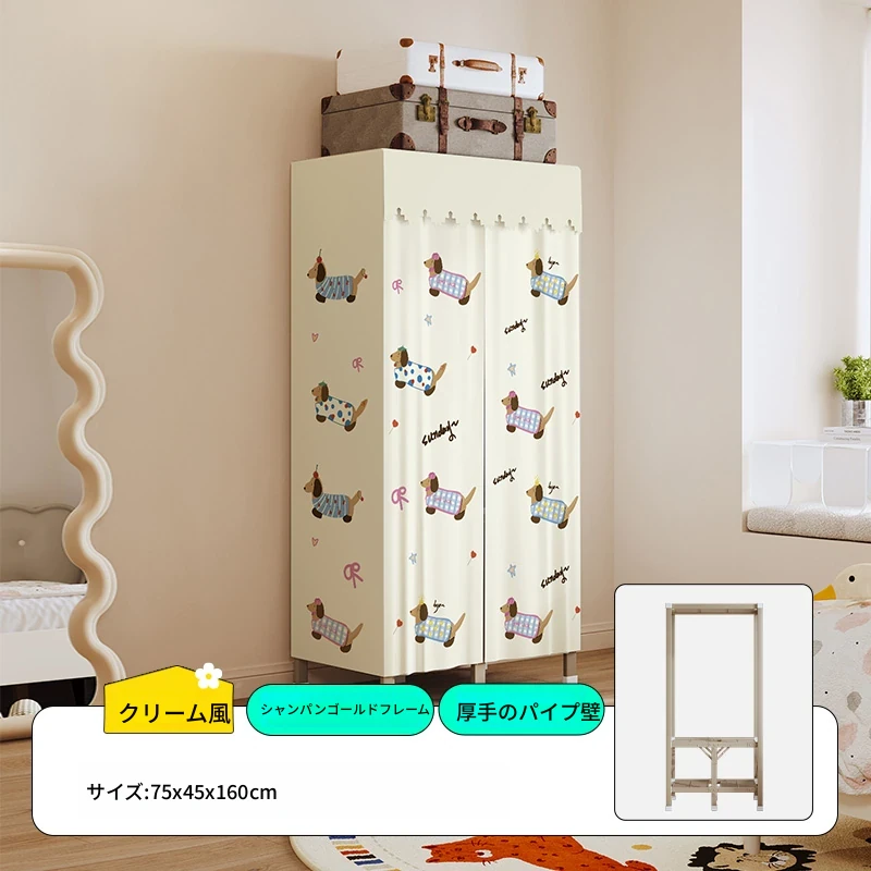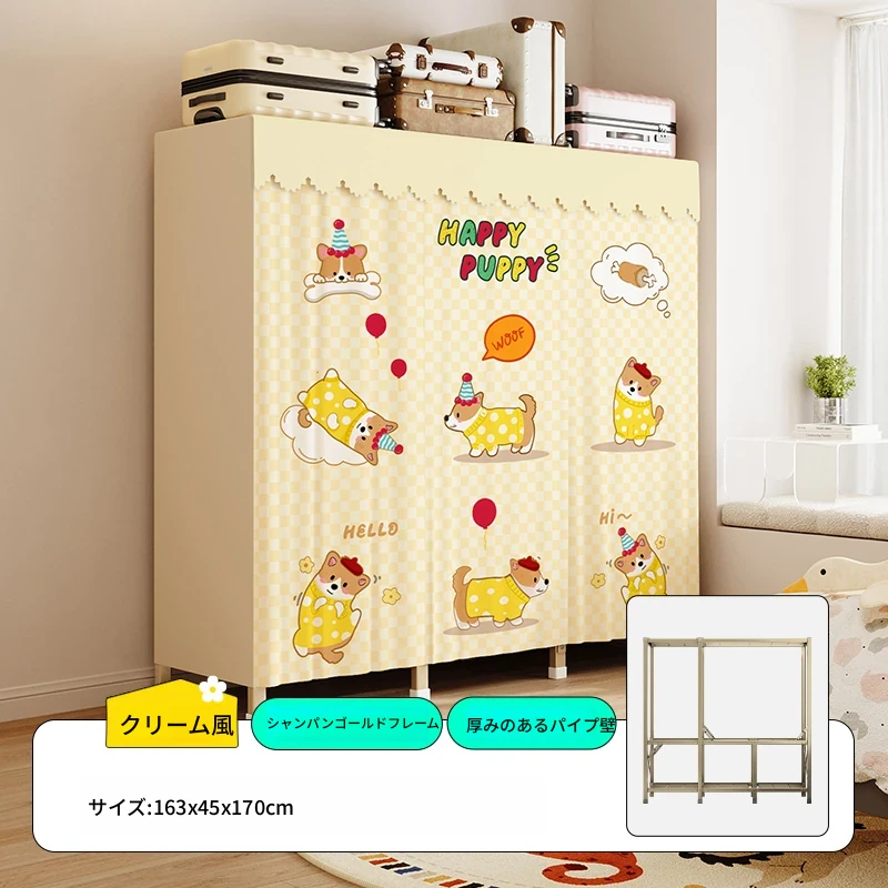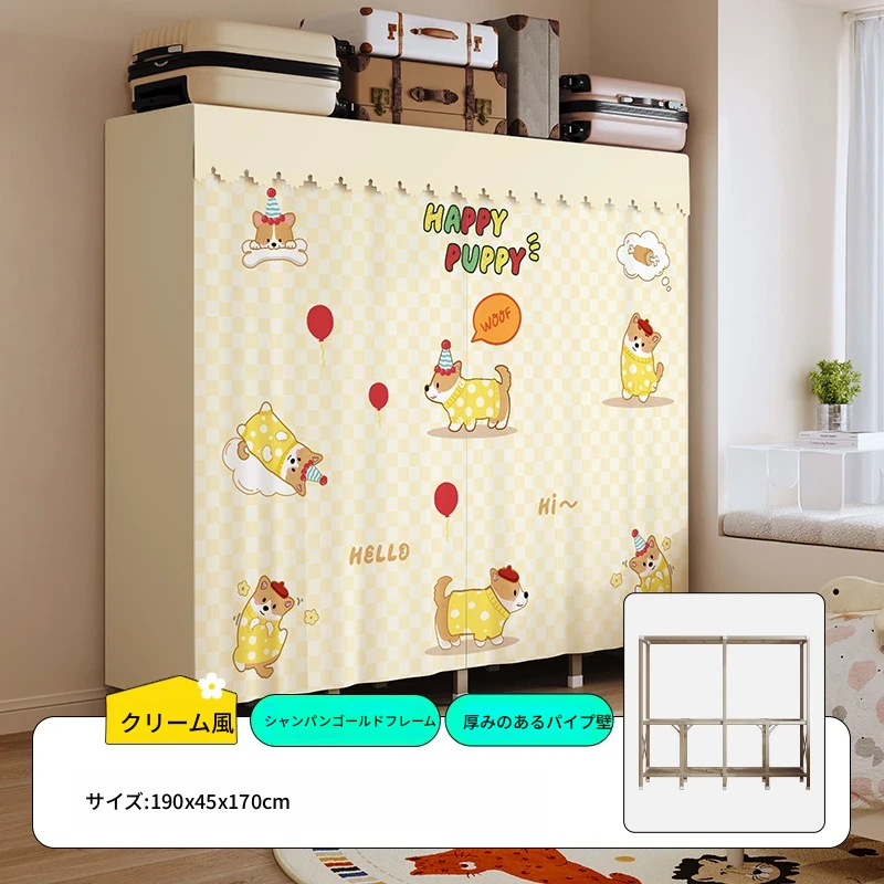 【シャンパン色】コーギー子犬:長さ163*幅45*高さ170cm(収納棚付き)