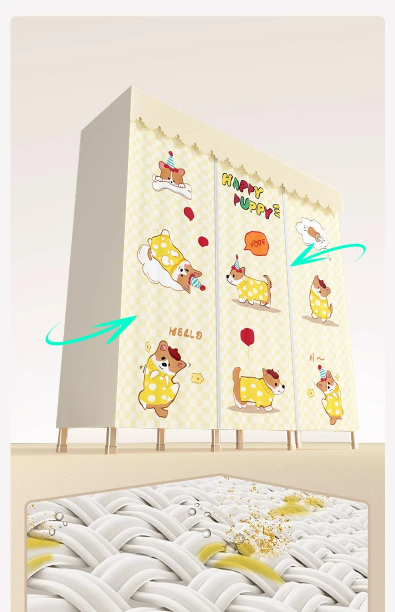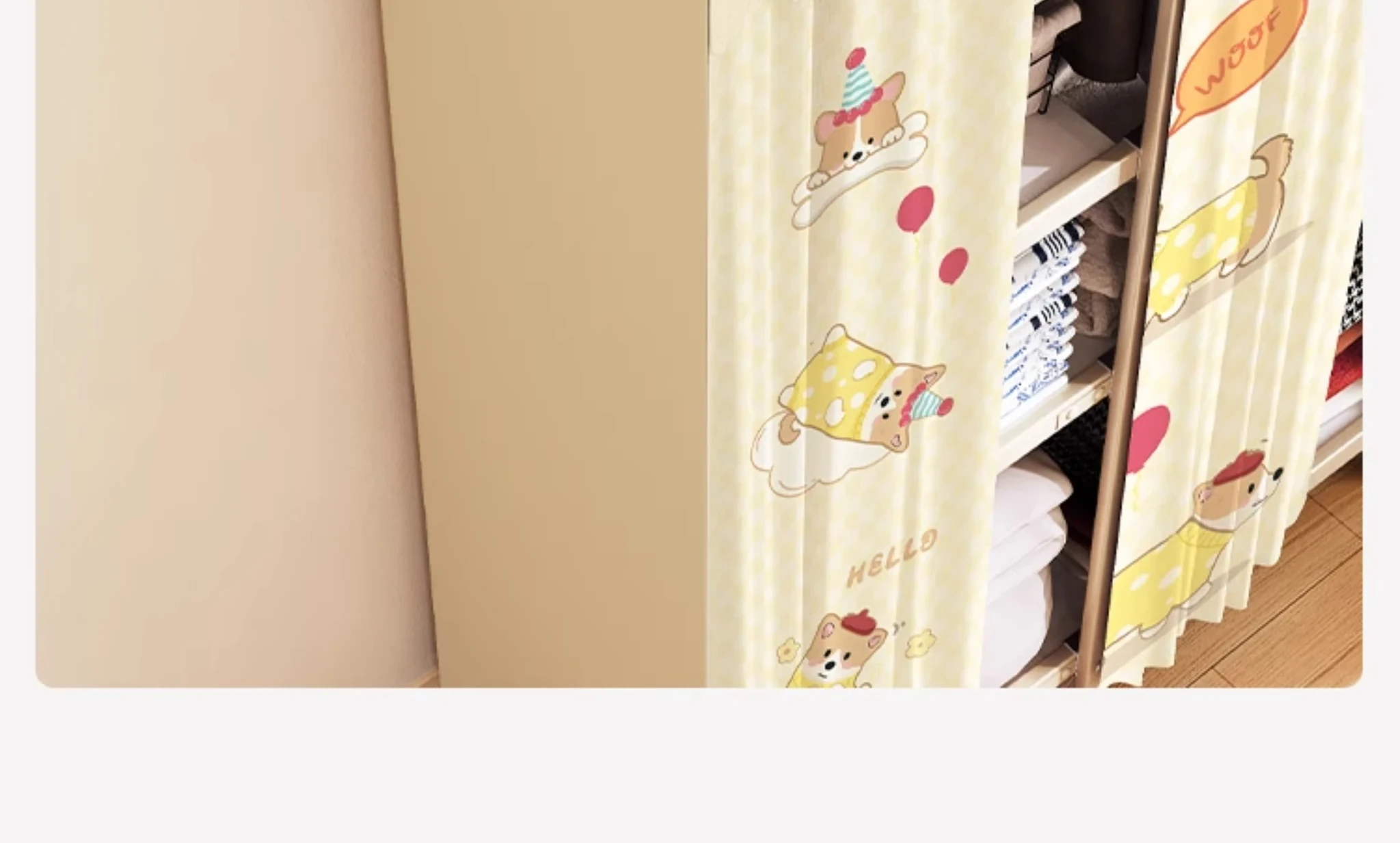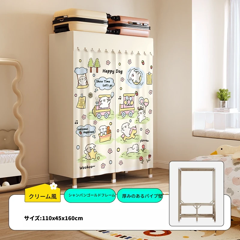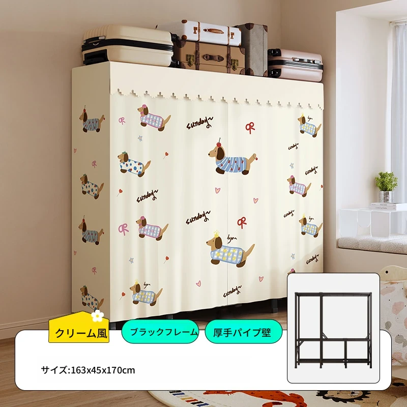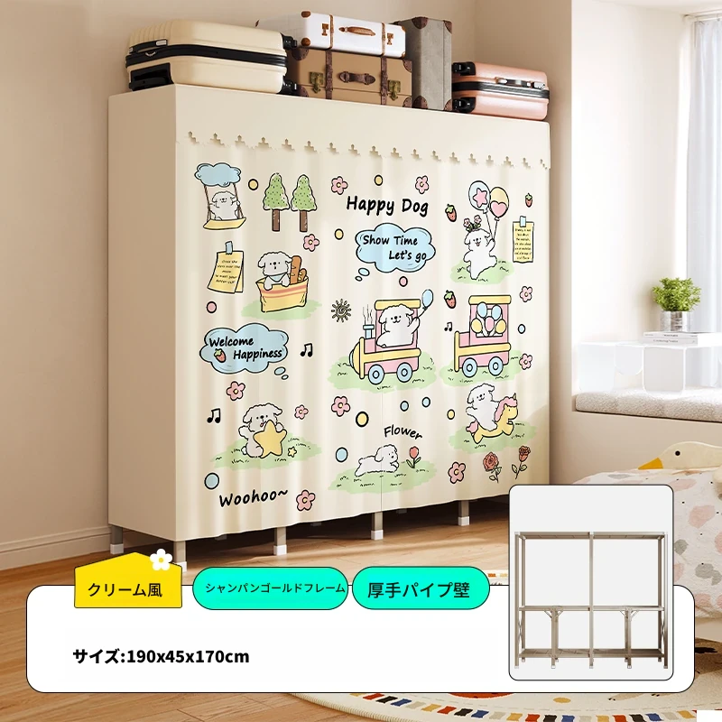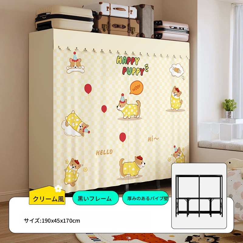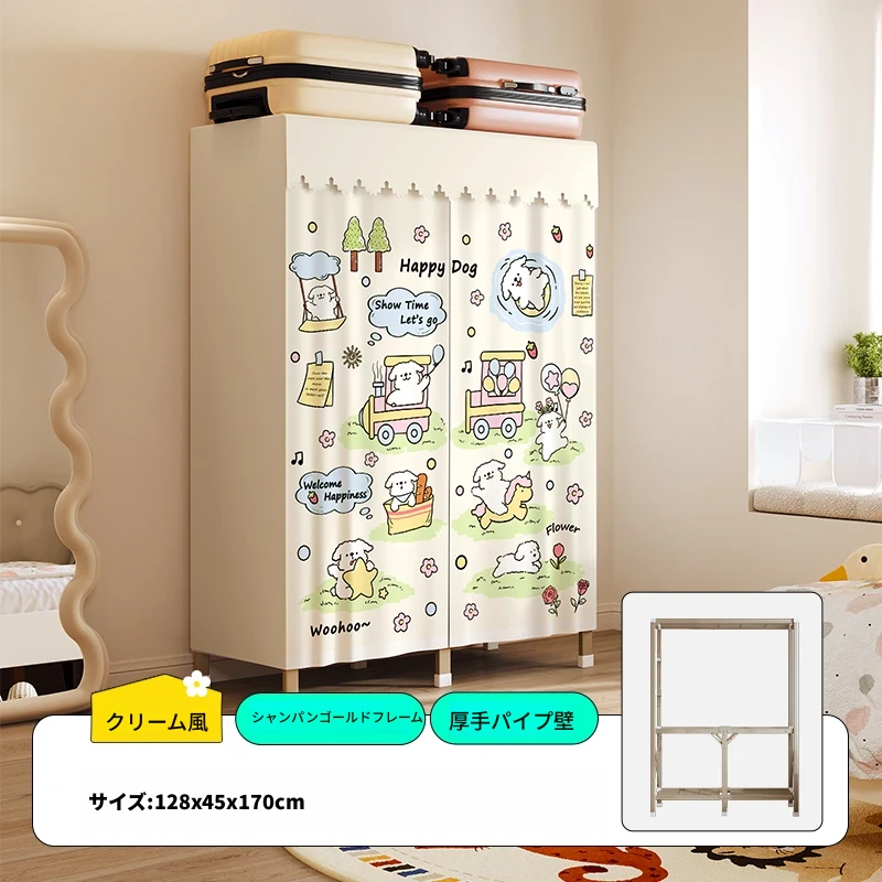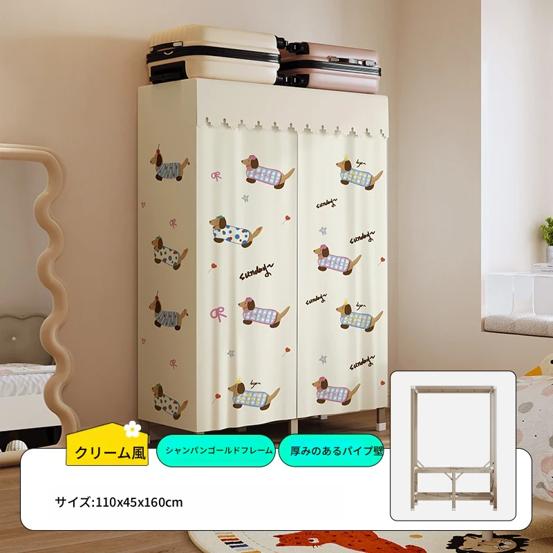 【シャンパン色】コーギー子犬:長さ163*幅45*高さ170cm(収納棚付き)