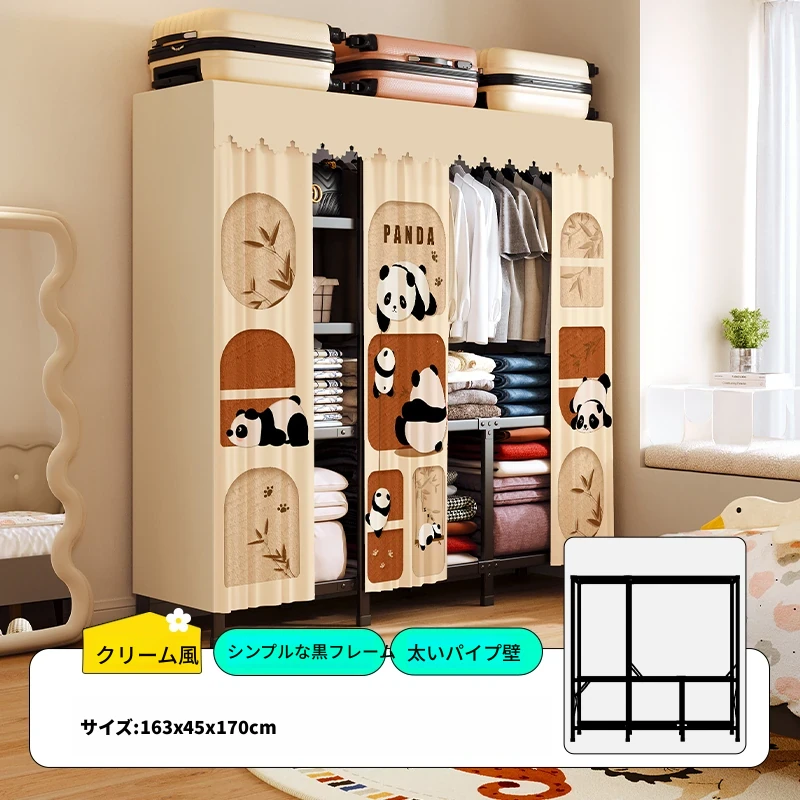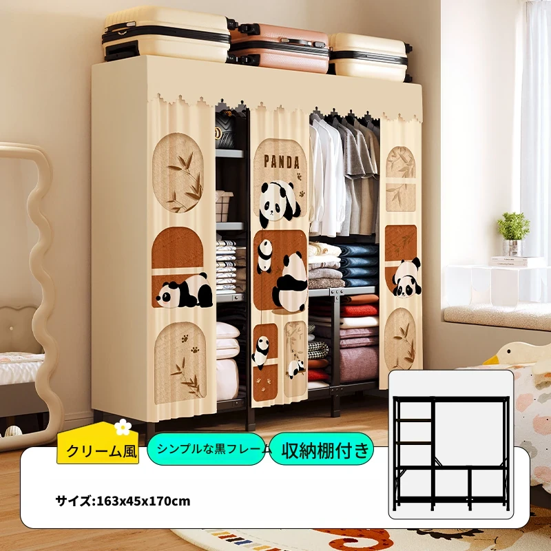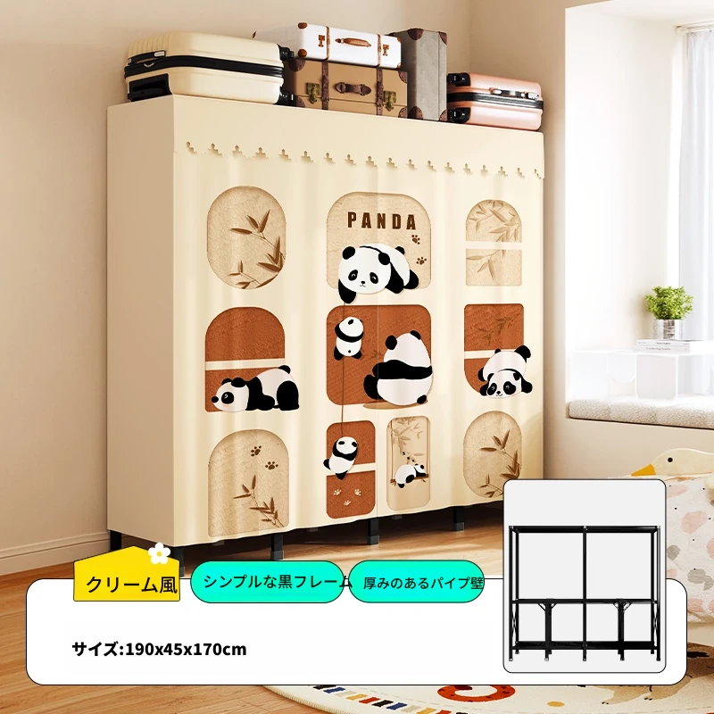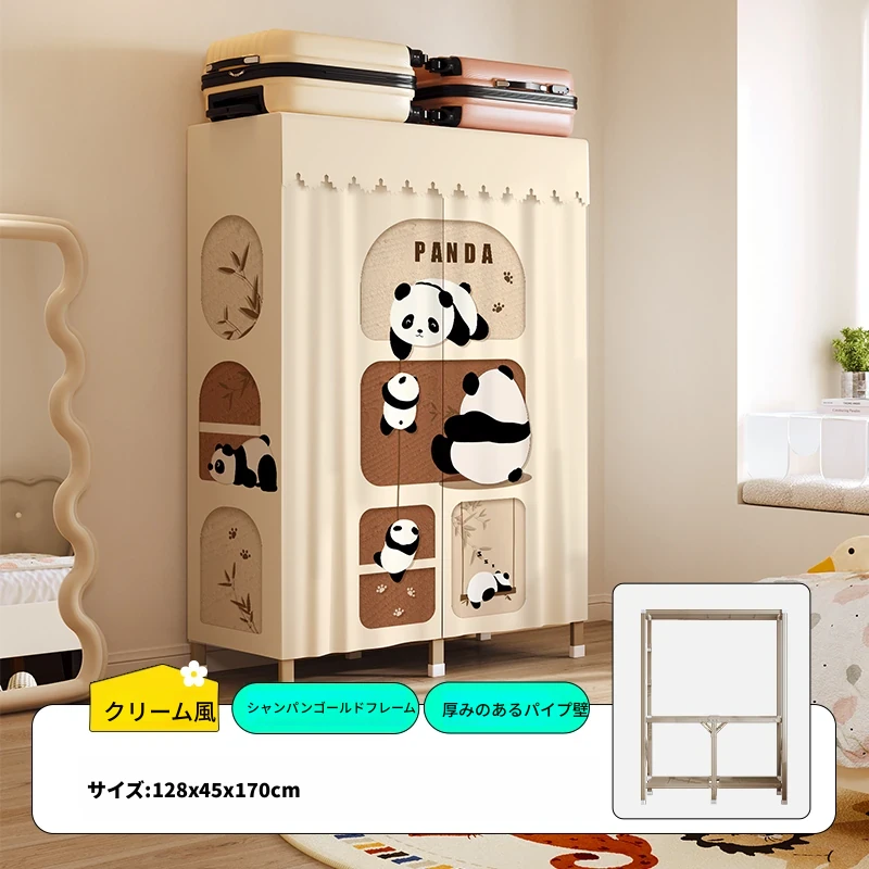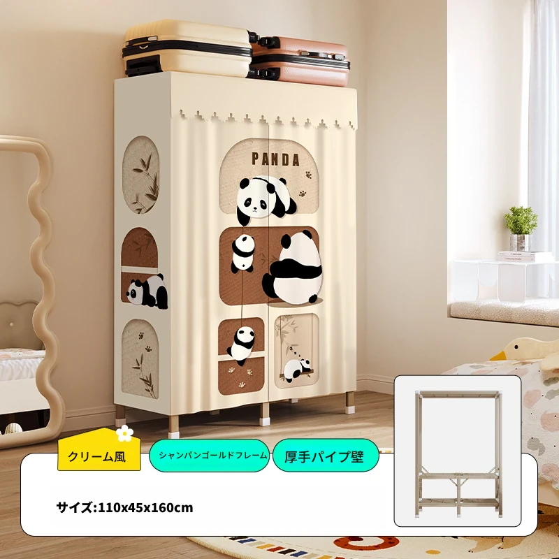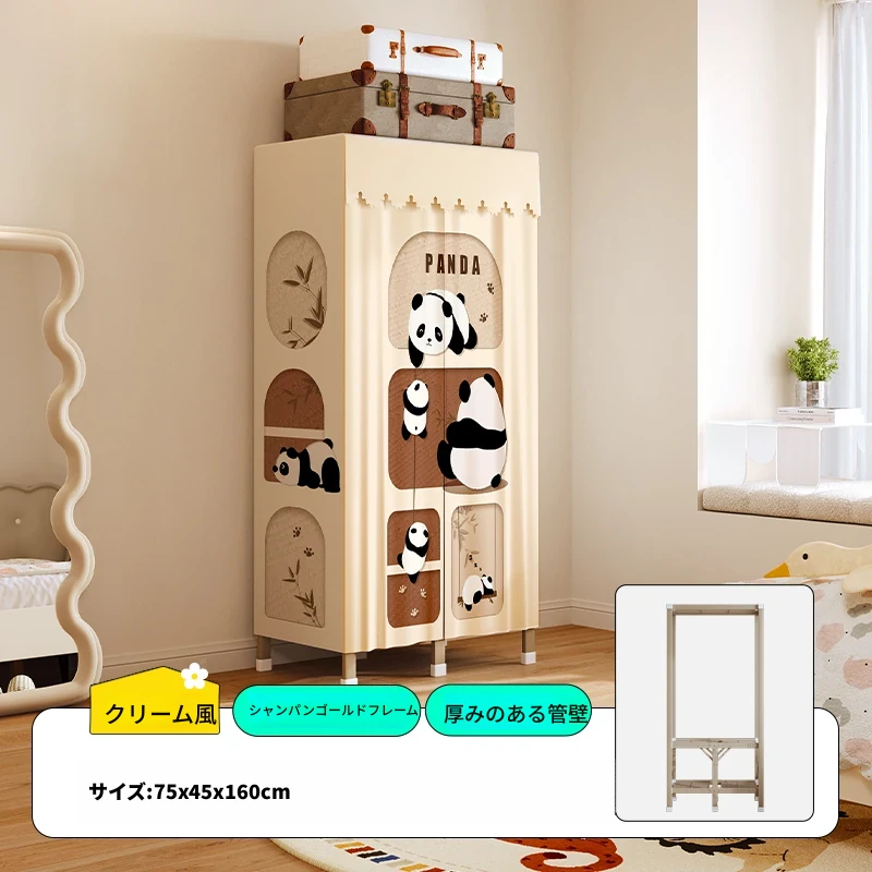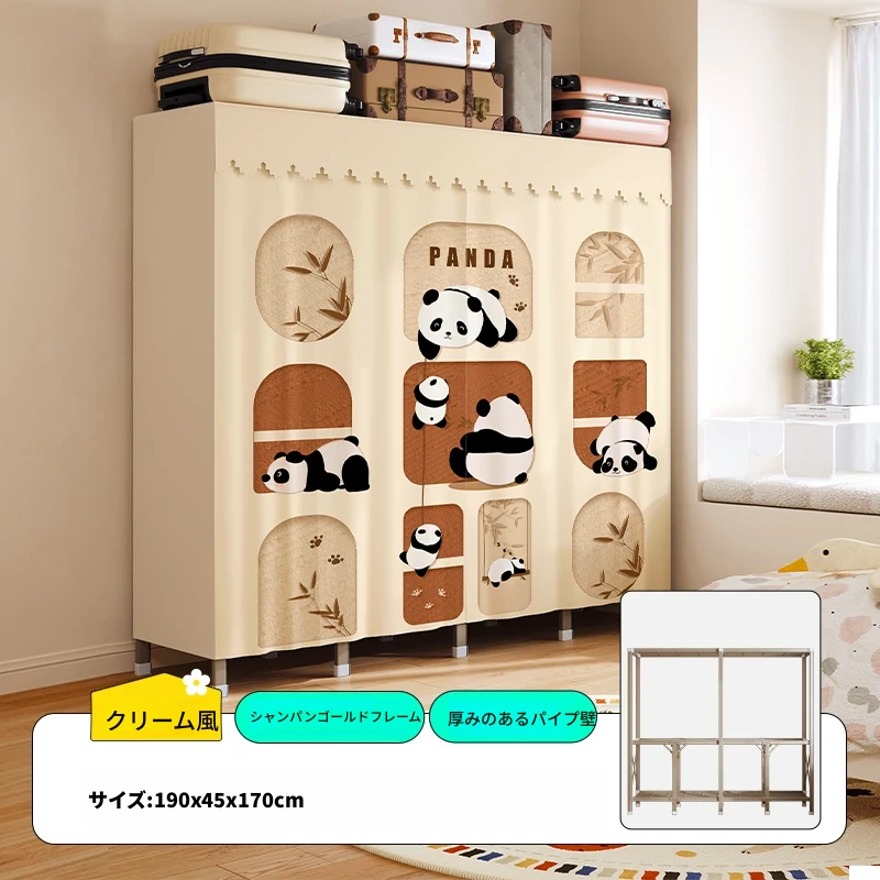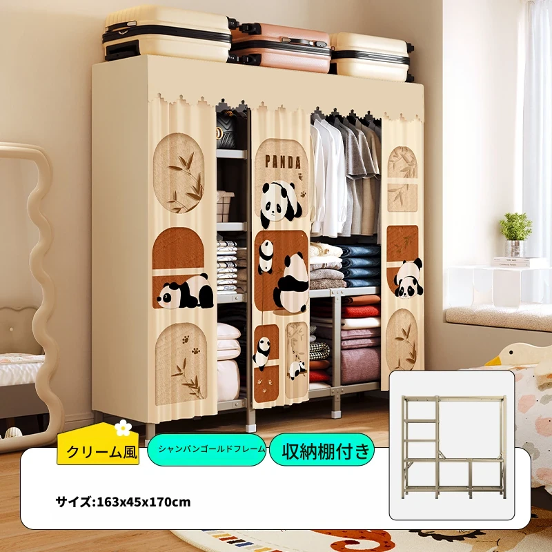 【シャンパン色】いたずらパンダ:長さ163*幅45*高さ170cm(収納棚付き)