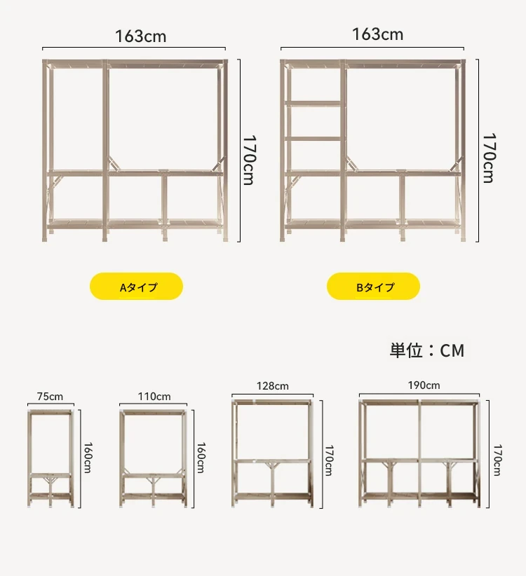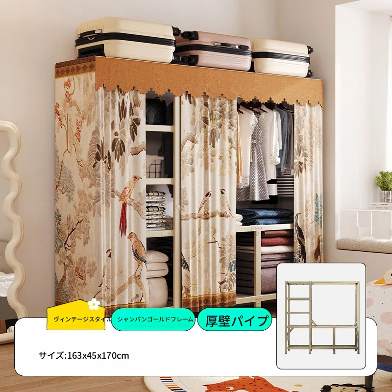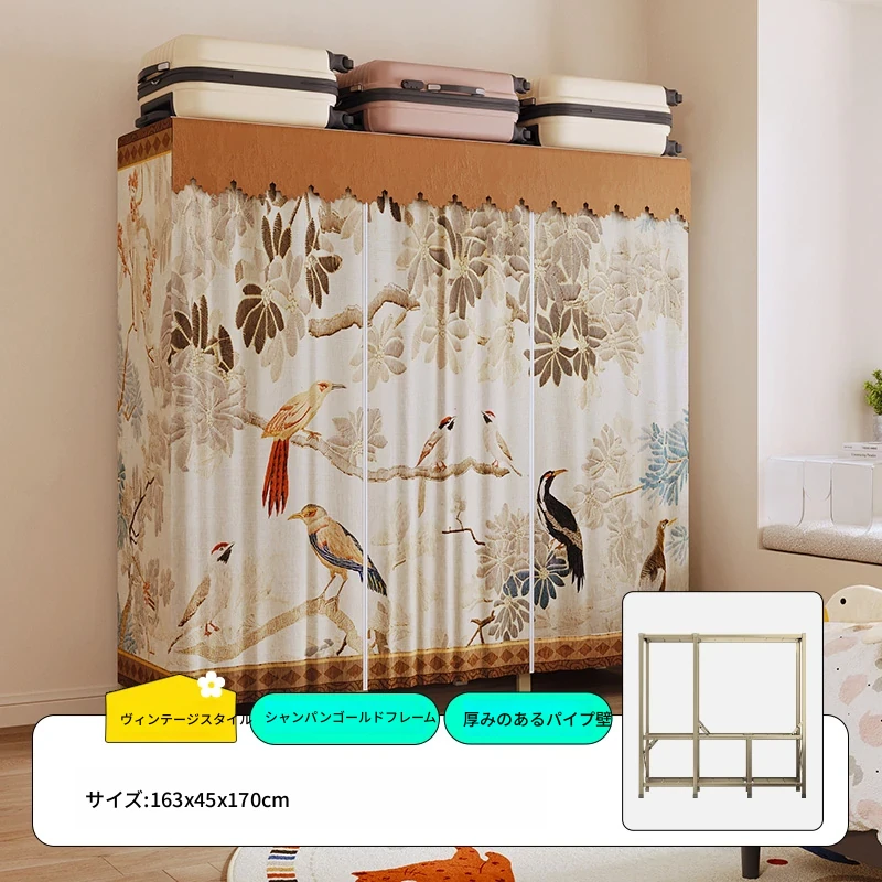 【シャンパン色】喜びの眉:長さ163*幅45*高さ170cm(収納棚付き)