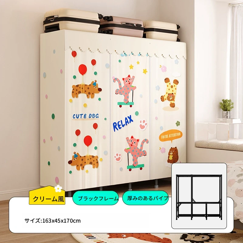 【ブラック】水玉猫:長さ163*幅45*高さ170cm(収納棚付き)