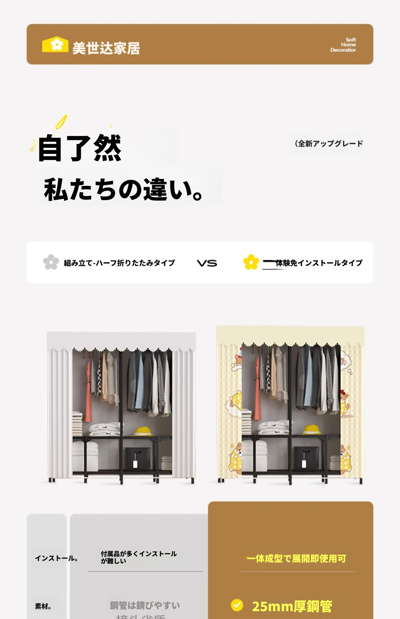ミセダの簡単設置不要な折りたたみ衣装ケース!耐久性抜群で、寝室や学生寮に最適なコンパクトな布製クローゼット。おしゃれで実用的な収納ソリューションを今すぐ手に入れよう!