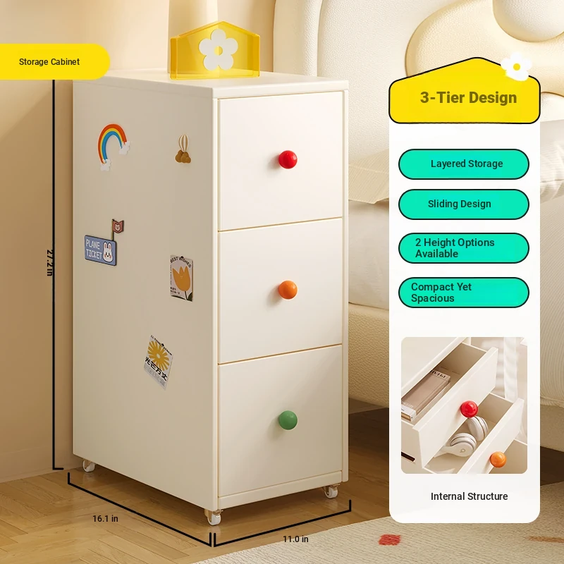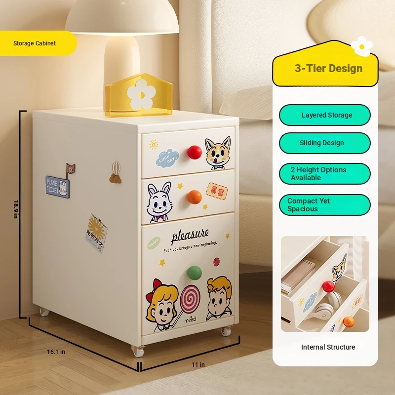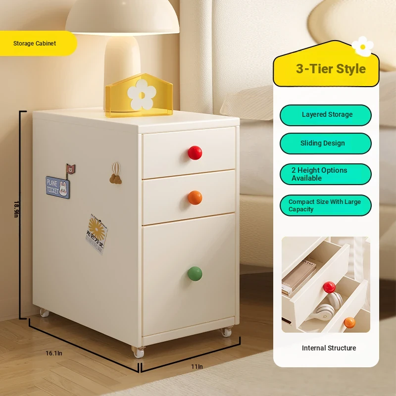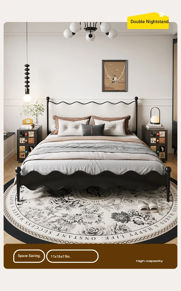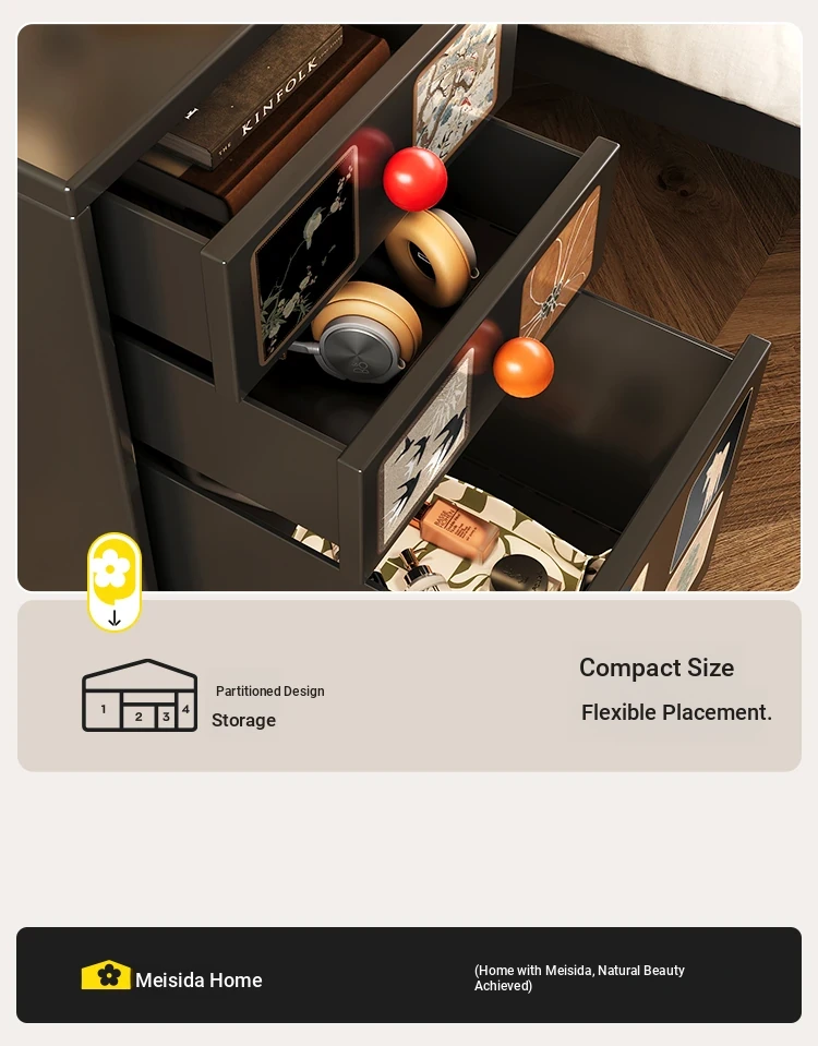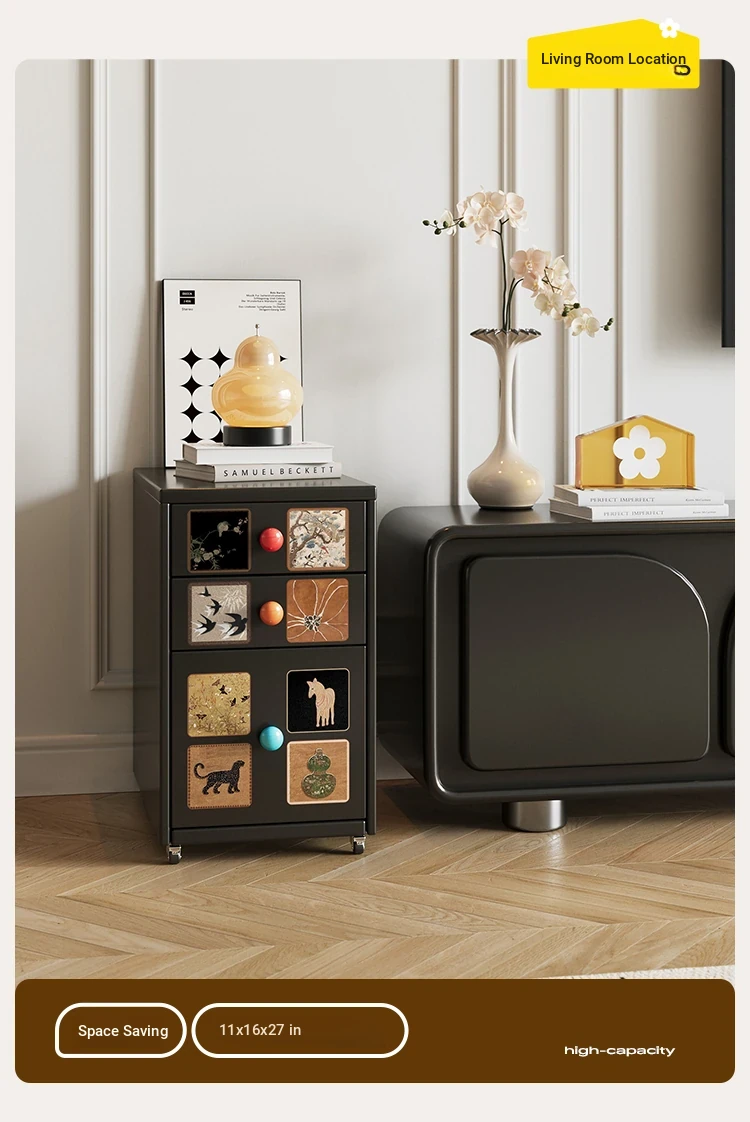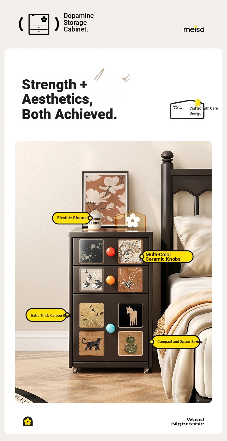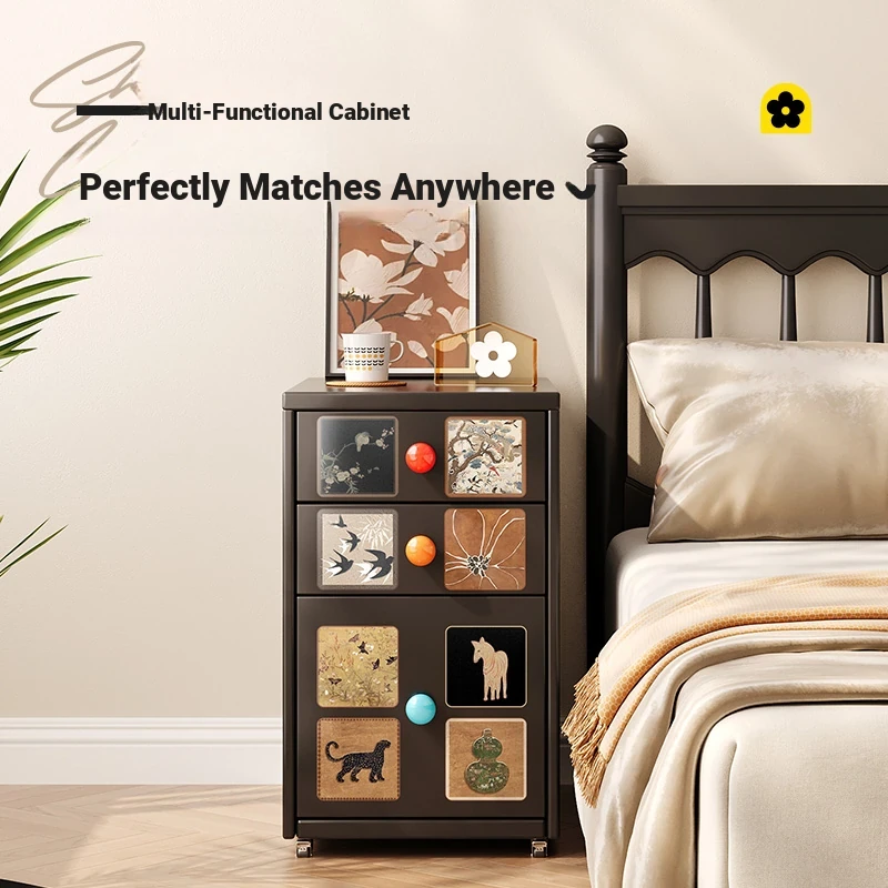 Meisida Vintage-Style Black Narrow Bedside Cabinet - Compact and Mobile Iron Storage Nightstand for Home Bedrooms