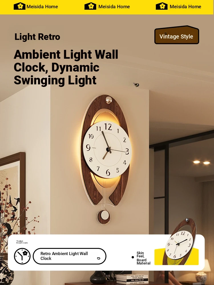 Meisida Vintage Wall Clock - 2024 New Minimalist Creative Design for Living Room & Dining Area, Elegant Wall Timepiece for a Touch of Sophistication