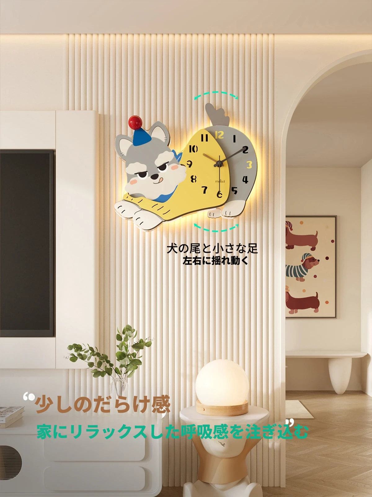 メイシーダ犬用ウォールクロック2025新作!クリーミーなデザインでおしゃれなリビングにぴったり。人気のインテリアアイテム、壁面照明付きのクリエイティブな時計で、家をもっと魅力的に演出しましょう!