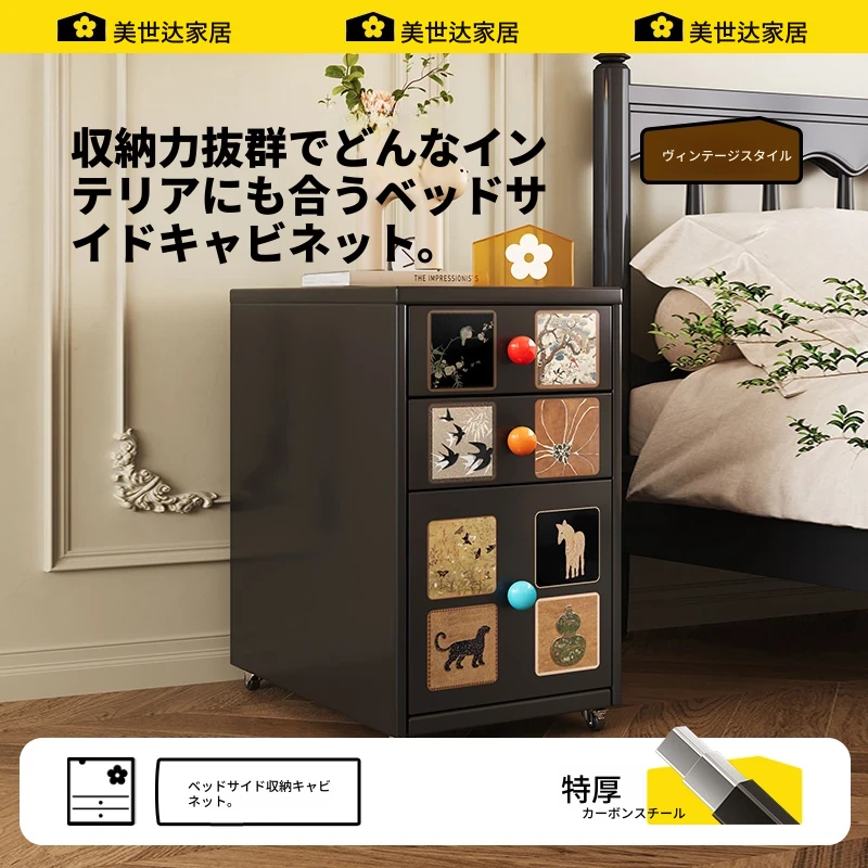 美世达フレンチヴィンテージナイトスタンド2025新作!高級感あふれるクリエイティブなアンティーク風デザインの小型サイドキャビネット。あなたの寝室を特別な空間に変えるアイテムです!